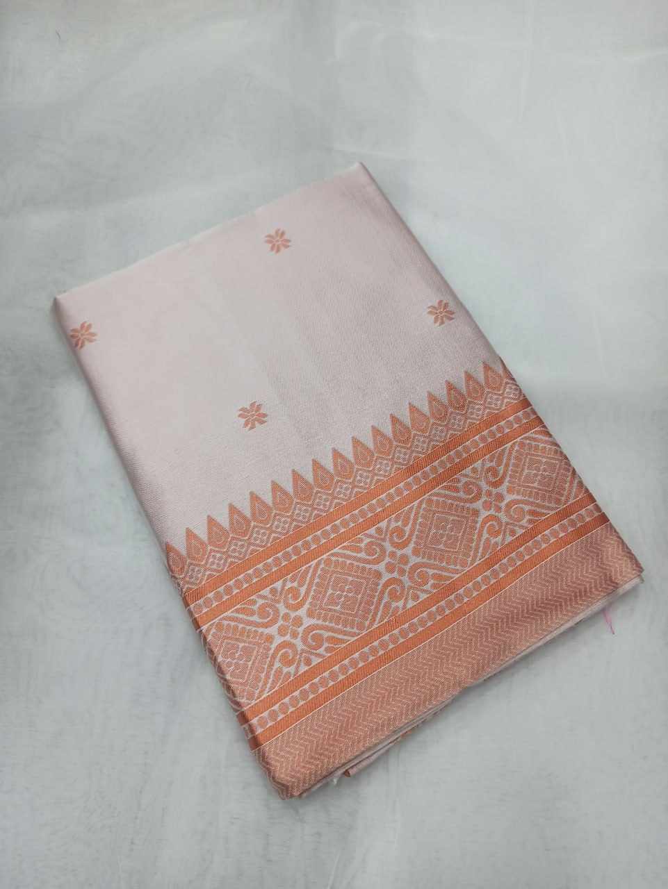 Name : | MF 1950 WHITE BANARASI SOFT LICHI SILK SAREE |